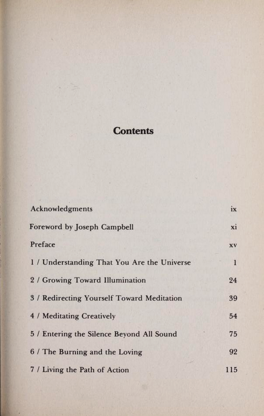 Do I ascribe to any one philosophy? Yes. It is the philosophy of eternal life to be lived by yourself, the realization that you yourself pave the road by which you reach this state of consciousness. All the philosophies of the world are merely signs to let you know of the many crossroads and side roads. But you create your path and set the pace by which you follow it. It’s an exhilarating feeling to know that no one will have to goad you. It is your inner self that you will answer to and follow. It is therefore vital to know this inner self so well that you will respond to its every desire. It is my conviction that meditation is the best way for me to get acquainted with this higher self. That does not mean it has to be the best way for everyone else. Everyone must find their own method for reaching within.