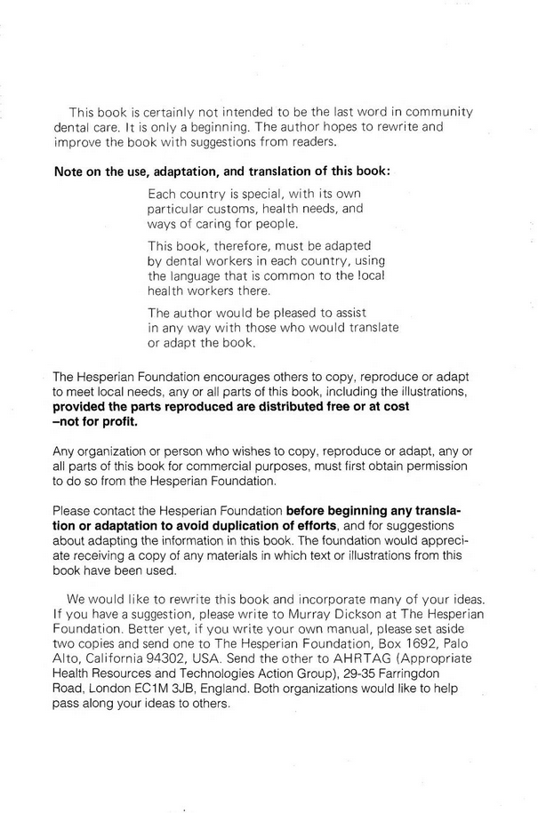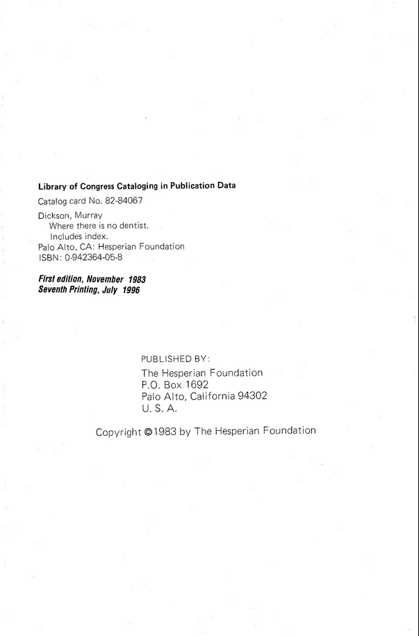 Read free. Where There Is No Dentist, by Murray Dickson, 1983.