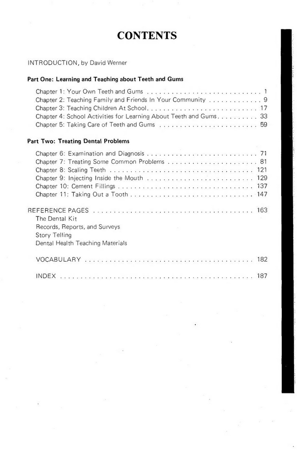 Where There Is No Dentist is a book about what people can do for themselves and each other to care for their gums and teeth. It is written for: