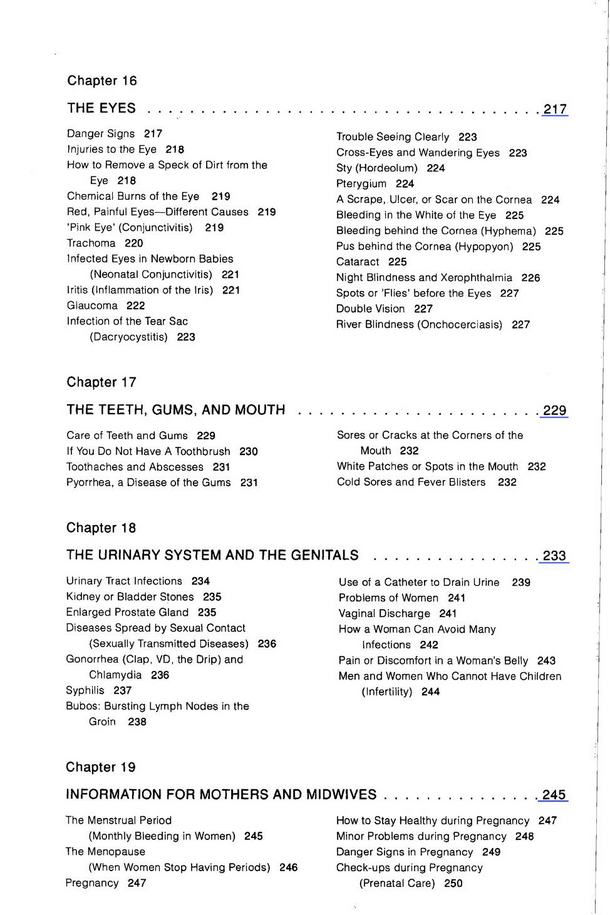 This handbook has been written primarily for those who live far from medical centers, in places where there is no doctor. But even where there are doctors, people can and should take the lead in their own health care. So this book is for everyone who cares. It has been written in the belief that: